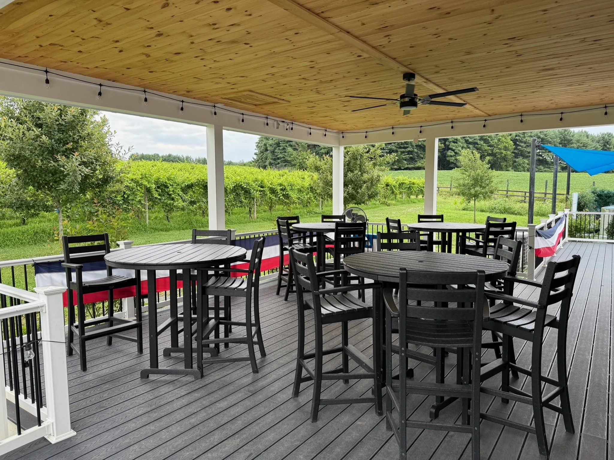 Up to 25 guests | Fri - Sun | 11am - 5pm) The tented barn patio is great place for smaller gatherings under 25 people to drink wine, cater food, and be together. The patio deck is situated next to the vineyard for a great experience. It’s a fan favorite for smaller showers, birthdays, and general get-togethers. The rental includes the private use of the space for 4 hours, tables and seating. It is family and pet-friendly, and your guests may also enjoy our live music on the weekends! Available March - November.